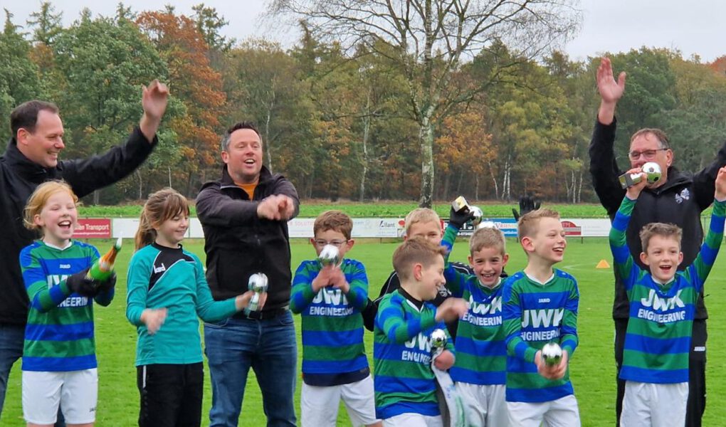 Na 4 ruime overwinningen, was vandaag de kampioenswedstrijd. De tegenstand had pas 1 keer verloren dus dat beloofde een spannend wedstrijd te worden. En spannend werd het! Uiteindelijk hadden we aan een 4-4 gelijkspel genoeg om de bekers omhoog te houden! De friet in de kantine was daardoor ook extra lekker!