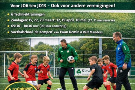 In samenwerking met Voetbalschool ‘De Kempen’ van Twan Demin en Ralf Manders organiseren wij een reeks van 6 techniektrainingen voor spelers van JO6 t/m JO13. Tijdens deze trainingen staat individuele ontwikkeling centraal. Er wordt gewerkt in small groups, waardoor iedere speler veel persoonlijke aandacht krijgt. De indeling vindt plaats op basis van leeftijd en niveau, …