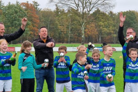 Na 4 ruime overwinningen, was vandaag de kampioenswedstrijd. De tegenstand had pas 1 keer verloren dus dat beloofde een spannend wedstrijd te worden. En spannend werd het! Uiteindelijk hadden we aan een 4-4 gelijkspel genoeg om de bekers omhoog te houden! De friet in de kantine was daardoor ook extra lekker!